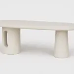 The Marie Table translates these qualities into form. Its architectural base and cut-out arches create a play of strength and openness, grounding the design while allowing light and space to move through it. Crafted in hand-applied microcement, each piece carries subtle variations in texture and tone, making every table unique.