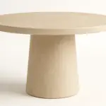 The Rosa Table reflects this strength through simplicity. A single, centered base supports a generous circular top, creating a sense of balance, stability, and presence. Crafted in microcement, the surface carries subtle variations and a soft mineral texture, giving the piece both material honesty and calm authority. Designed to anchor a space without overpowering it, Rosa is steady, timeless, and quietly powerful.